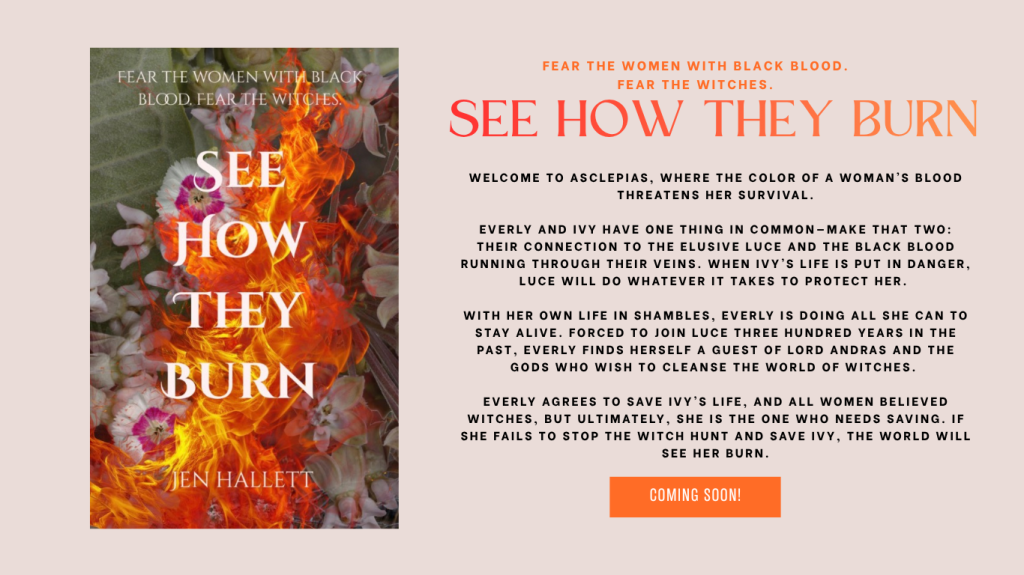 Everly agrees to save Ivy’s life, and all women believed witches, but ultimately, she is the one who needs saving. If she fails to stop the witch hunt and save Ivy, the world will see her burn.
